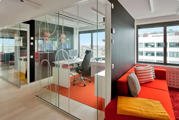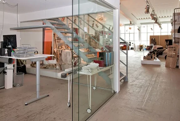 Glasväggar på Elfa:s huvudkontor i Södertull
